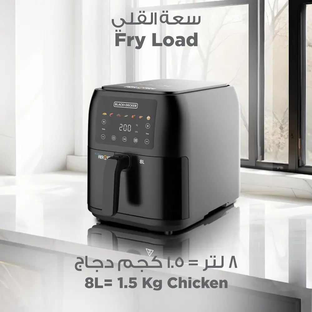 كن أول من يقيم “بلاك اند ديكر قلاية هوائية سعة 8 لتر – طاقة 1700 واط اسود SAF80-B5” إلغاء الرد