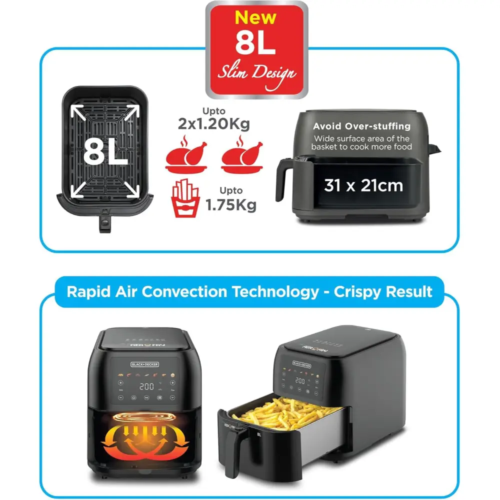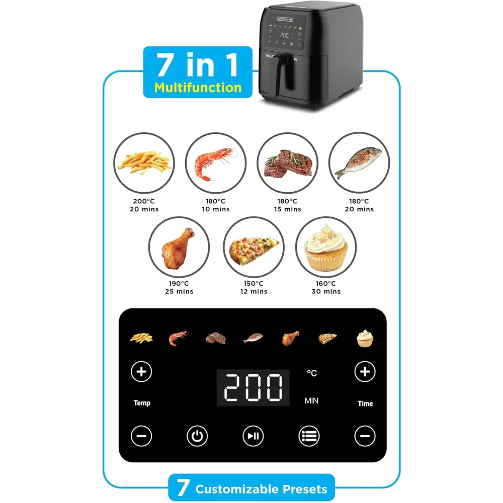 بلاك اند ديكر قلاية هوائية سعة 8 لتر – طاقة 1700 واط اسود SAF80-B5