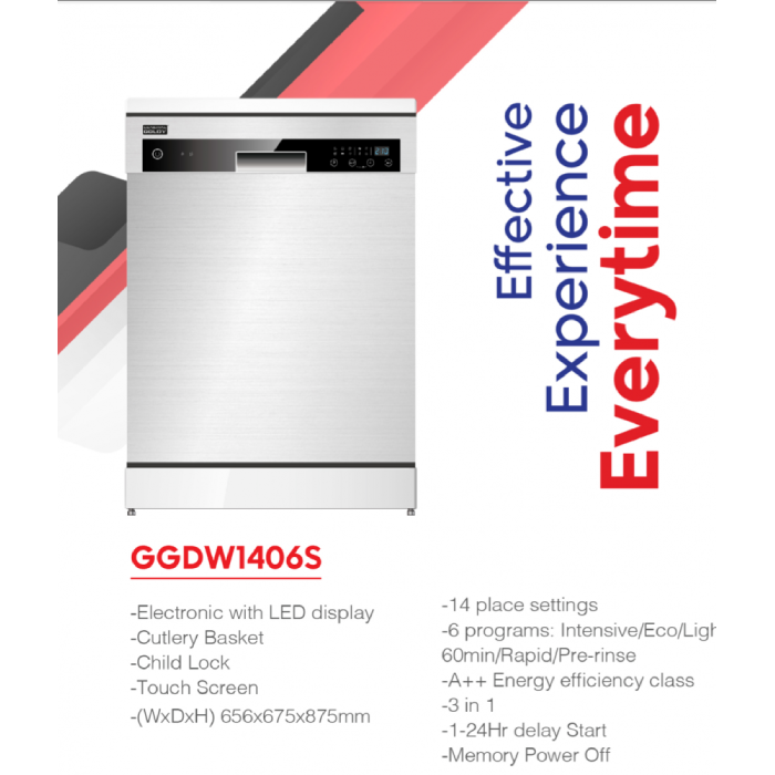 جنرال جولدى غسالة صحون 6 برامج 14 مكان سلفر GGDW1407S