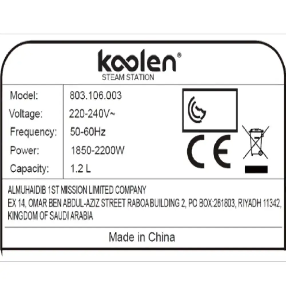 كولين كاوية بخار 2200 واط خزان مياه منفصل 1.2 لتر ابيض * موف 803106003