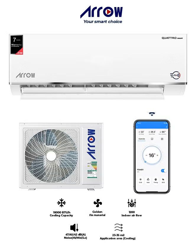 ارو مكيف سبليت سمارت بقوة ١٨٠٠٠ بي تي يو مع تبريد تربو وواي فاي وريموت كنترول RO-18SHC-S