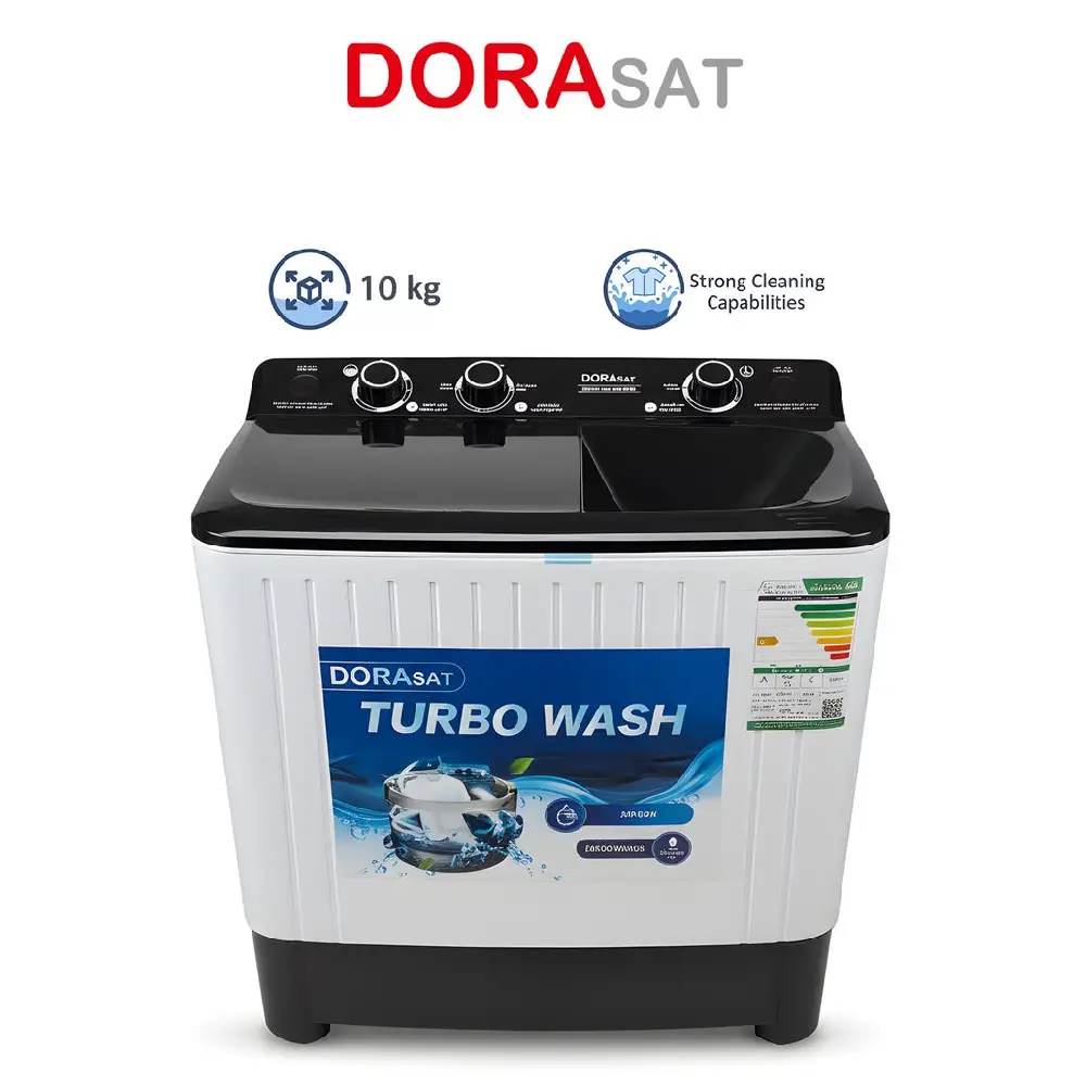 دورا سات غسالة ملابس حوضين 10 كيلو ابيض * اسود DS10TWM