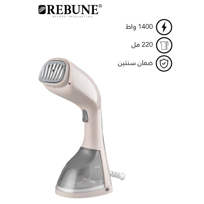 ريبون كاوية بخار يدوية مع فرشاة لإزالة الوبر قدرة 1400 واط سعة 220 مل بزمن تسخين قصير بيج RE-3-047