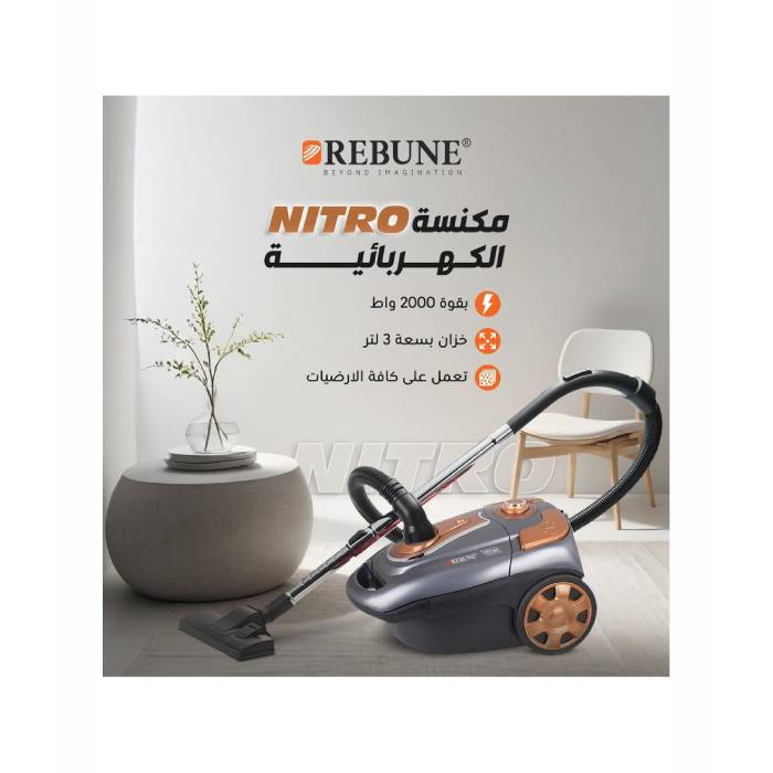 ريبون مكنسة كهربائية بكيس غبار 3 لتر رمادى قوة شفط قصوى 2000 واط RE-9-036