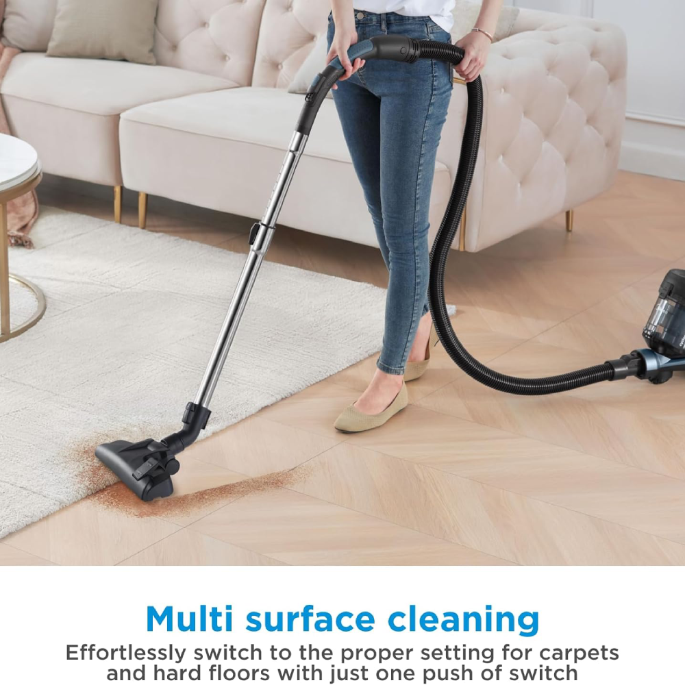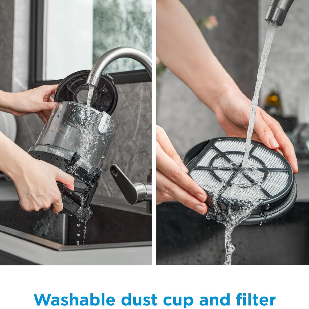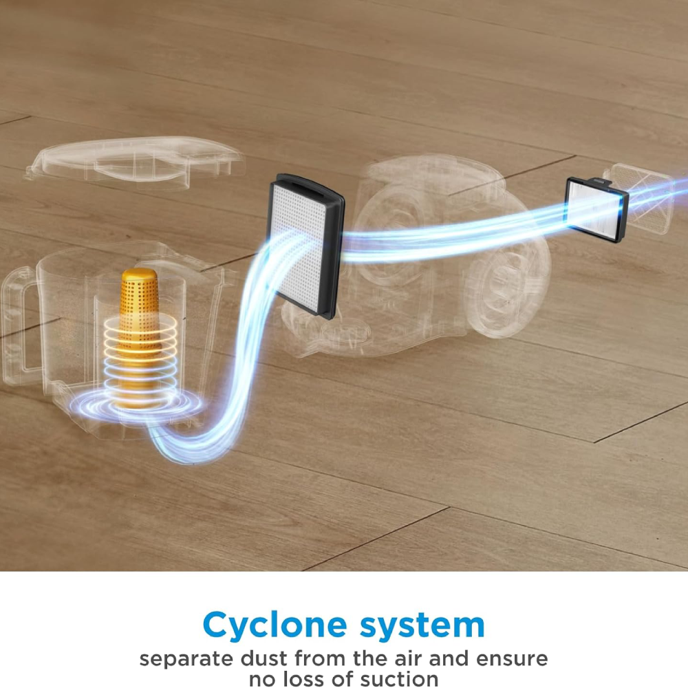 فلتر HEPA , لف الكابل تلقائيًا، صغير الحجم وخفيف الوزن لسهولة الحمل، سلة مهملات كبيرة، أداتان صغيرتان (مجرفة دائرية ,فوهة الشقوق)، سلة مهملات قابلة للغسل، نظام إعصار |